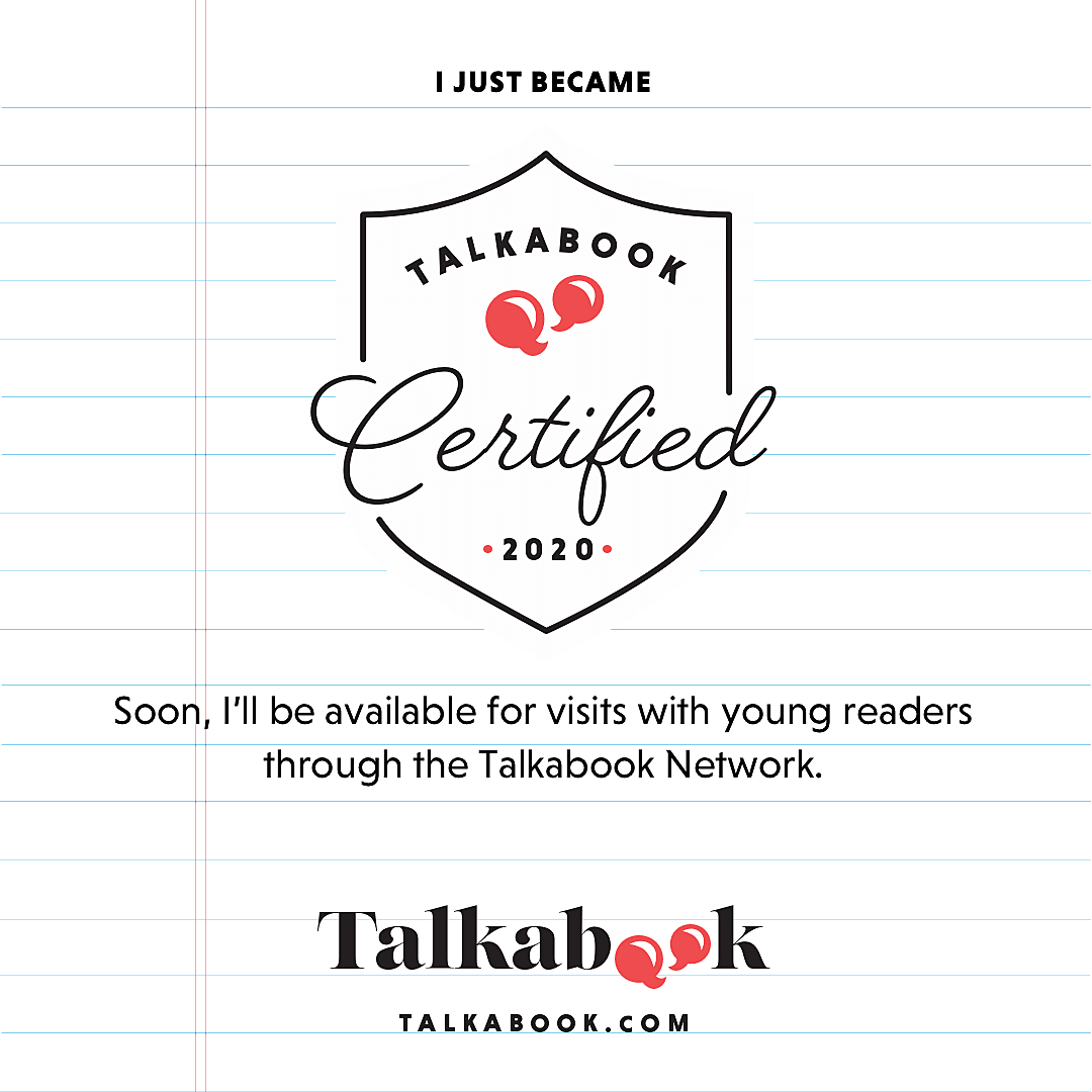 I’m very excited to be Talkabook Certified. Soon, I’ll be available for visits with young readers through the Talkabook Network. Check them out at talkabook.com.