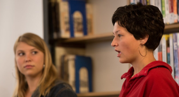 High school students lead a student panel discussion following the screening of  film Earthrise