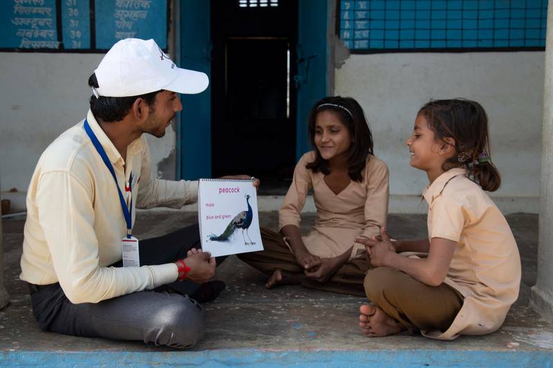 Critical to Educate Girls’ process is the mobilization of an ‘army’ of gender champions our Team Balika – young men and women from the villages in which we work, who tirelessly go door to door to engage with families, influence a shift in mindsets and persuade parents to send their girls to school. They have also been critical in supporting the education of children during the pandemic, through a community-based education programme Camp Vidya, delivered in a socially-distanced way in over 7,000 villages.