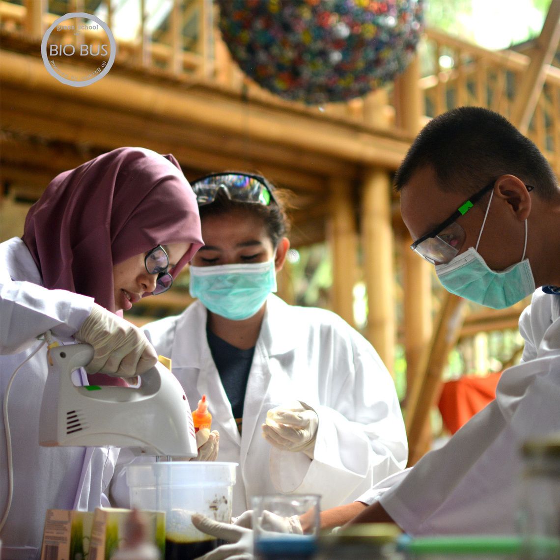 Not only provide classes for Green SchoolBali students only, BioBus also try to nurture the local community by giving the workshop for utilizing the used cooking oil and the peril of gross oil pollution.