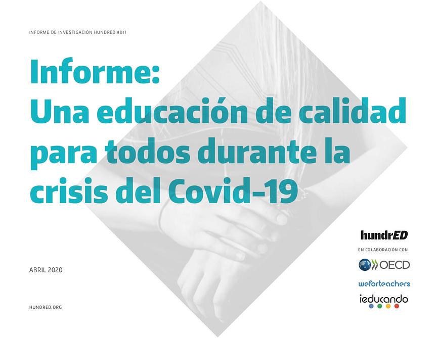 HundrED ha lanzado una página web y un informe, Una educación de calidad para todos durante la crisis del coronavirus, en colaboración con la Organización para la Cooperación y Desarrollo Económicos (OCDE), amplificando las oportunidades y desafíos para la educación durante este momento sin precedentes. Un número récord de 1.540 millones De niños se han visto afectados por la pandemia, y para el 31 de marzo, 185 países en Asia, Europa, Oriente Media, América del Norte y América del Sur habían anunciado o llevado a cabo cierres de universidades y colegios.