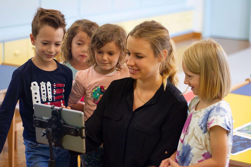 Following a video tutorial on the iPad, they then independently craft a "magic disc" that matches Peter’s story. "The benefit of the tutorial is that the children can stop at any time or repeat something if they want to look at it again," says Franziska Kläui. Working with the Green Screen is the final step. Here, the children learn to "do magic" and, thanks to special- effects technology, to insert themselves into a picture they previously selected.