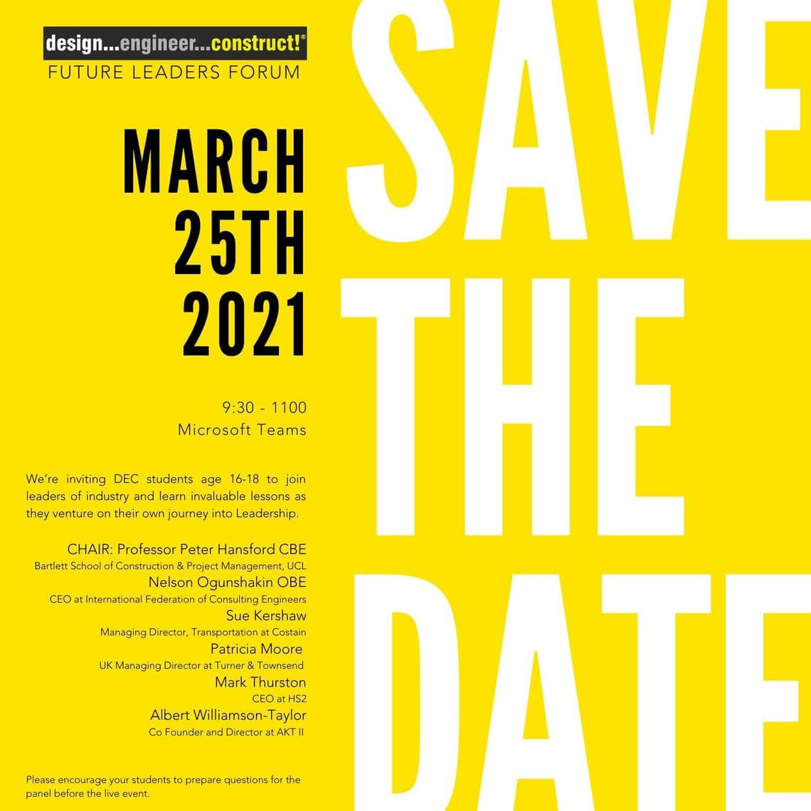Chaired by Peter Hansford CBE FREng, we were joined by Dr. Nelson Ogunshakin OBE of the International Federation of Consulting Engineers, Patricia Moore of Turner & Townsend, Sue Kershaw of Costain, Albert Williamson-Taylor of AKT II and Mark Thurston of HS2 for an hour and a half's live discussion and Q&A session to explore the personal qualities, professional characteristics and technical skills required by Built Environment leaders of the future.