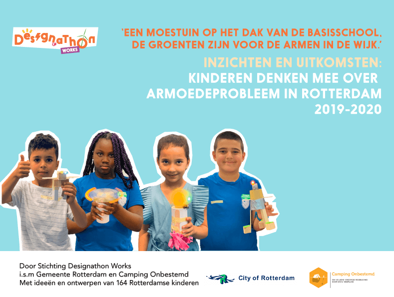 According to the Central Bureau of Statistics 15 percent of Rotterdammers live in poverty. In 2019 and 2020, Commissioned in 2019 by the Rotterdam city council and in collaboration with Camping Onbestemd, we ran 10 designathon workshops about poverty with 164 Rotterdams children. In the workshops, children learned about different forms of poverty, came up with ideas, and made prototypes to solve the problems around poverty among Rotterdam city families.