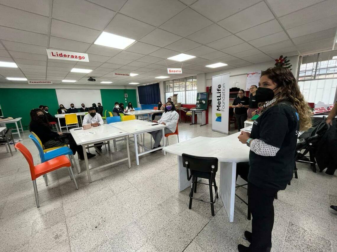 MetLife México volunteer coaches support students to tackle SDG 3: Good Health and Well-Being at a WSI Innovation Day.