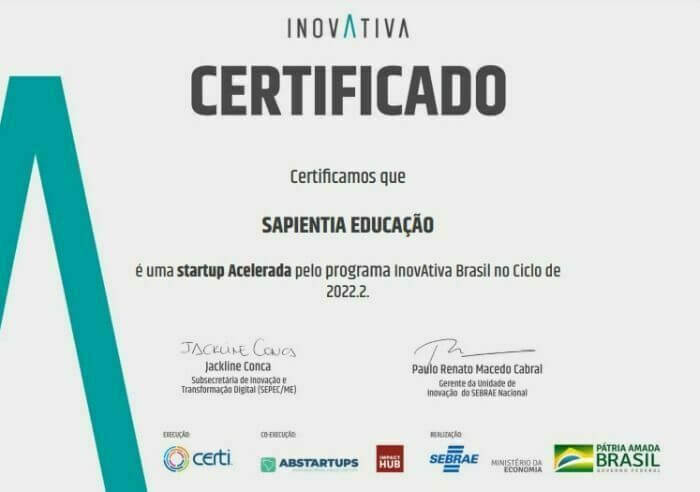 Inovativa is one of the most important and impact accelelation programs in Brazil. Sapieduca had participated in this interprise in 2022.