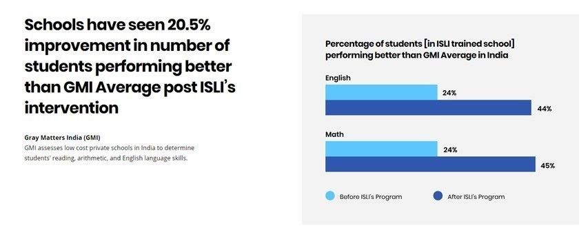Student outcomes results from our partner in India, conducted by an external testing agency