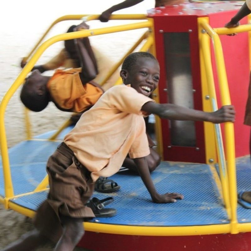 The merry-go-rounds are bright colours and beautiful, a gift to the community who wouldn’t otherwise be used to having play equipment. It may seem a simple thing, but providing joy through colourful, exciting play equipment can empower communities and help them to place more importance on education – whilst the children also get to have some fun too!