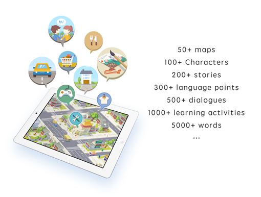With engaging story quests and interactions, you are able to learn and practice the vocabulary, pronunciations, sentences, grammar and writing in gameplay.