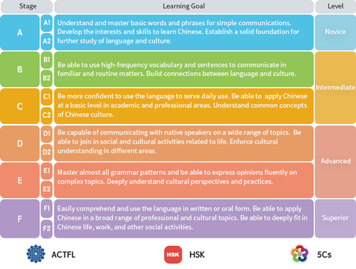 Our curriculum framework is structured and designed in accordance with ACTFL by providing authentic language and culture content in a game-based world. It covers HSK vocabulary and various topics that K12 students need to learn. Our learning goals are designed to meet the 5 Cs standards.