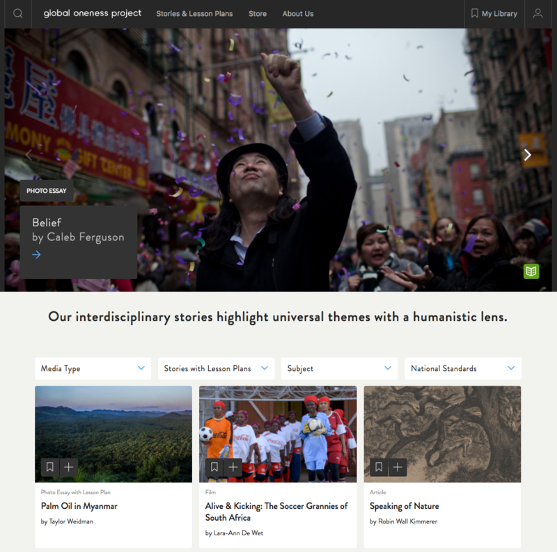 The Global Oneness Project’s website is designed for educators to explore and search for content in a variety of ways: media type, course subjects, U.S. national standards, and via curated collections.