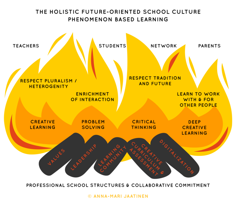 The On Fire! leadership training is based on the new Finnish curriculum and therefore strives to involve participants and respect their skills and knowledge. The training aims to help participants develop their school’s practices, look at change in society, answer challenges in communication and understand the continuously developing role of digitalization in education.