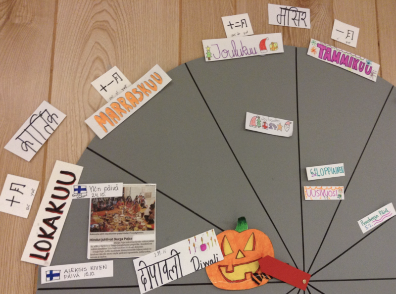 The class studied the Sacrifice Feast and how it connects to the Bible. It shares the story of sacrificing the firstborn and the students looked at the significance of sacrificial rituals in different religions. We looked at pictures of Muslims around the world celebrating Eid Al-Adha and the next day we discussed the holiday again. This allowed the teacher to assess how well the students had retained the information. The next holiday in line is the Finnish author Aleksis Kivi Day and the celebration of Finnish Literature.