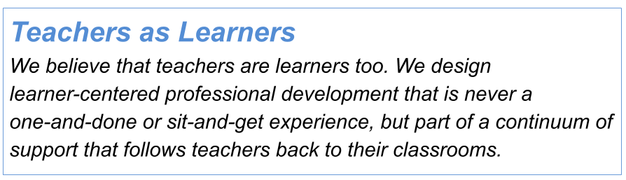 Educator Workshops professional learning experiences that emphasize hands-on practice and peer-to-peer support.